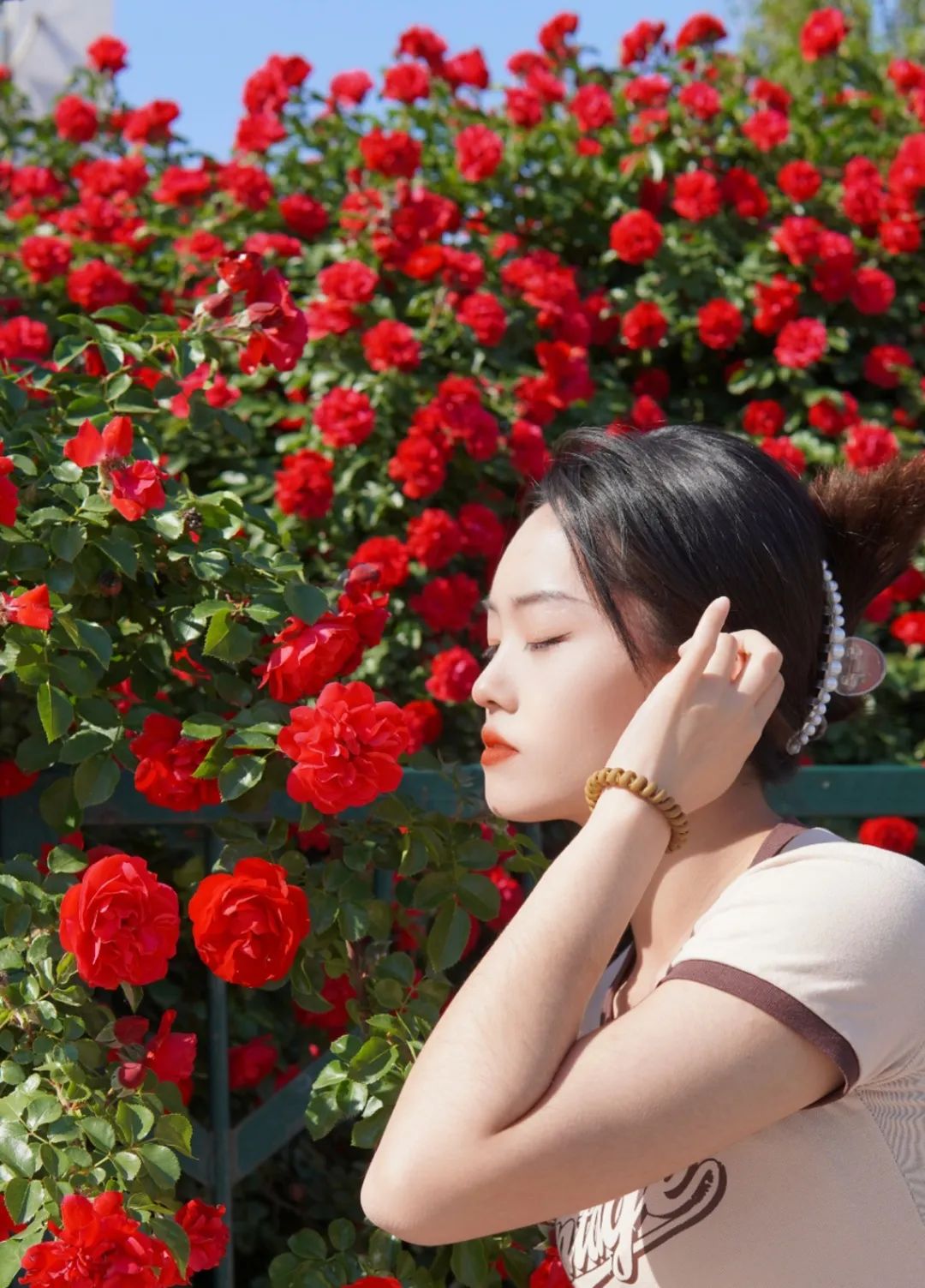 在活动中,艺术学院同学们积极参加,在校园中寻找鲁硕红的花影,人影和花朵交织,宛如一幅画卷,再拿起手中的手机或者相机,将这一美好的瞬间定格,在这一瞬间,真实而浓烈的将自己的情感完全表现了出来,表达出学子们对自然植物的感受和热爱。