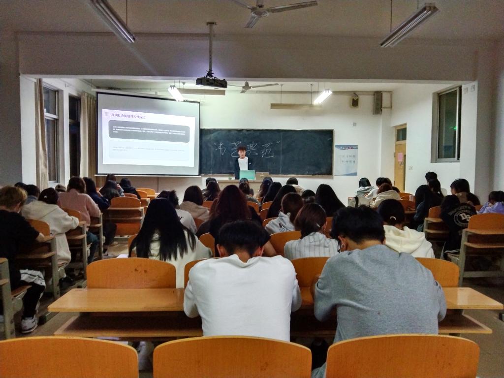 目前,已经举办了三期“书艺典范,榜样的力量”宣讲活动。第一期邀请了王雪莹同学分享了她对书籍《我与地坛》的感悟,以及四级备考和荣获校级一等奖学金的经验。在第二期活动中,卢萧迪同学以《长安的荔枝》一书引入,讲述了她的学习心得、成长历程以及在参赛方面的经验。第三期活动邀请了刘哲同学分享《在细雨中呼喊》一书的阅读心得,以及他的学习和工作体会。此活动让同学们学习了榜样同学的成功经验,并感受到了学习的乐趣和力量。