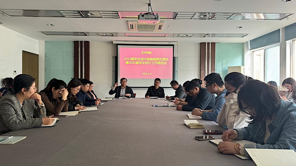 4月8日,艺术学院召开了2024届毕业设计中期检查推进会,目的在于确保学生毕业设计的质量和进度。学院专业教师及教务管理人员参加了会议。会议对毕业设计工作的整体进展进行了总结,并针对前期自查中发现的问题进行了深入分析和讨论。